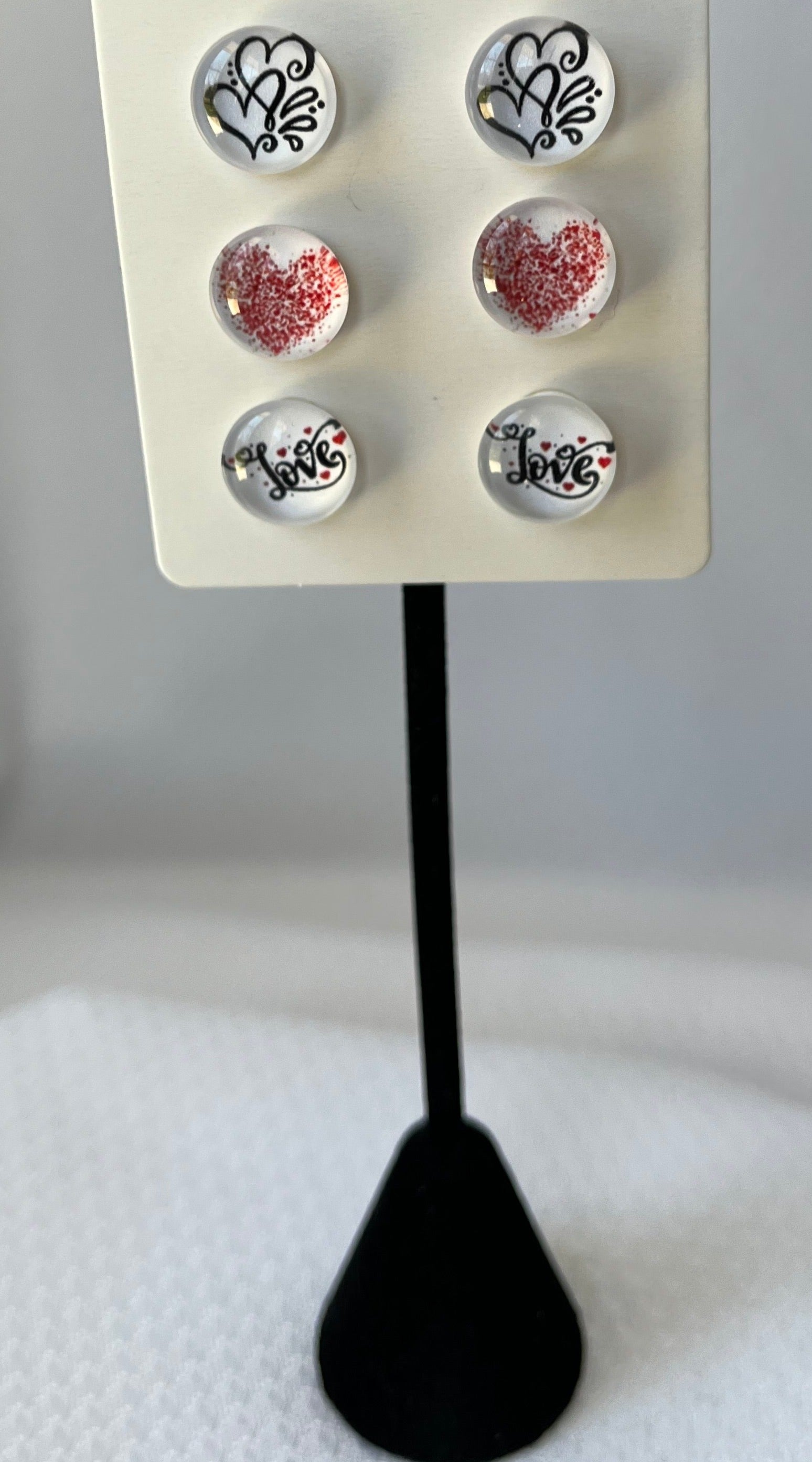 12mm diameter studs (7/16 inch), 3 pair pack. Super lightweight earrings, very fun colors and designs. These earrings are fun for any age.