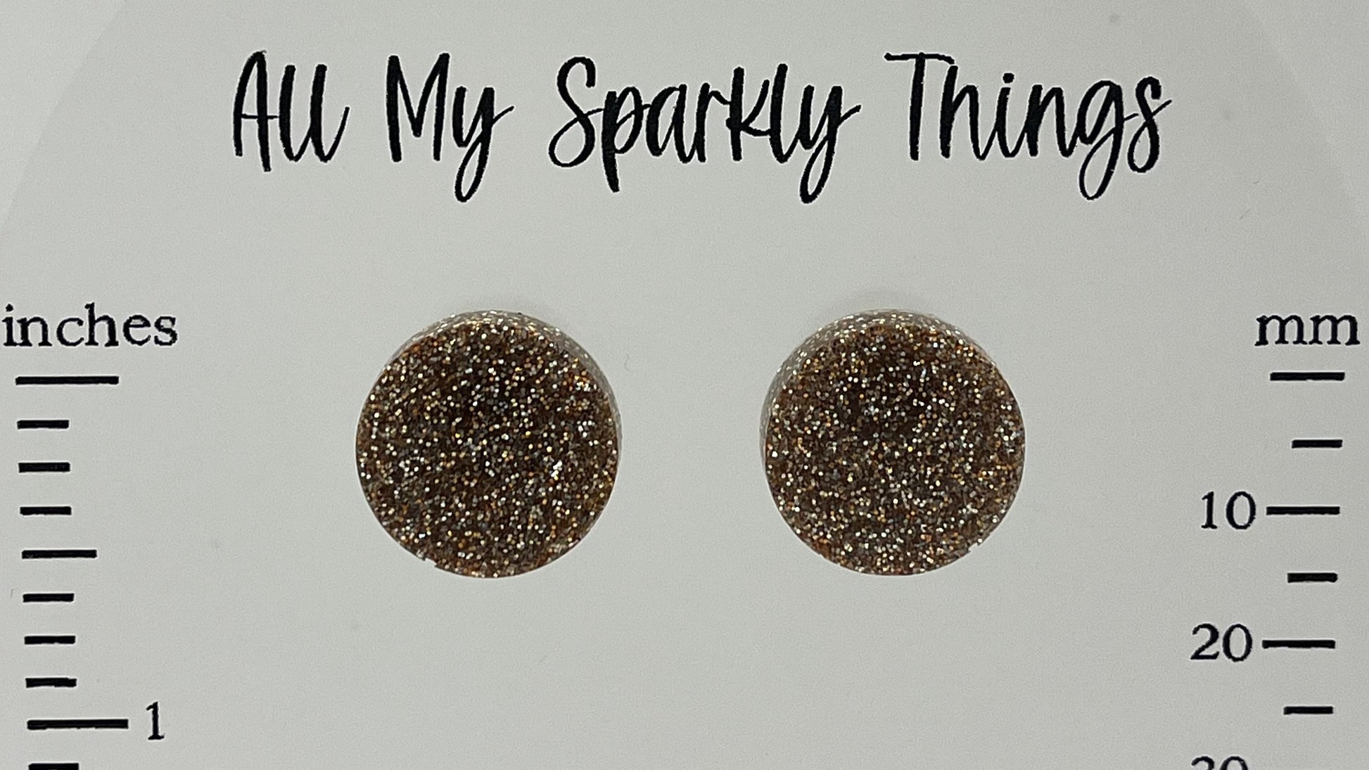 Single pair 18 mm large stud earrings. They are a beautiful rose gold color that will complement any outfit. Made with resin, glitter, and hypoallergenic surgical steel post, very lightweight and comfortable.