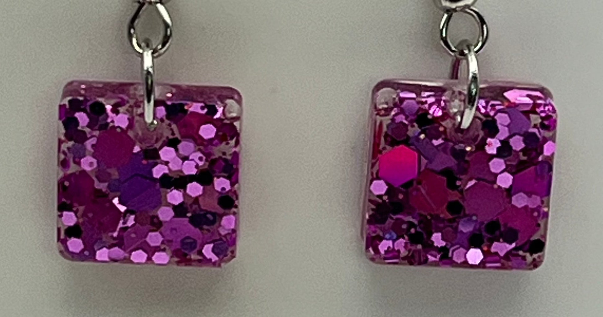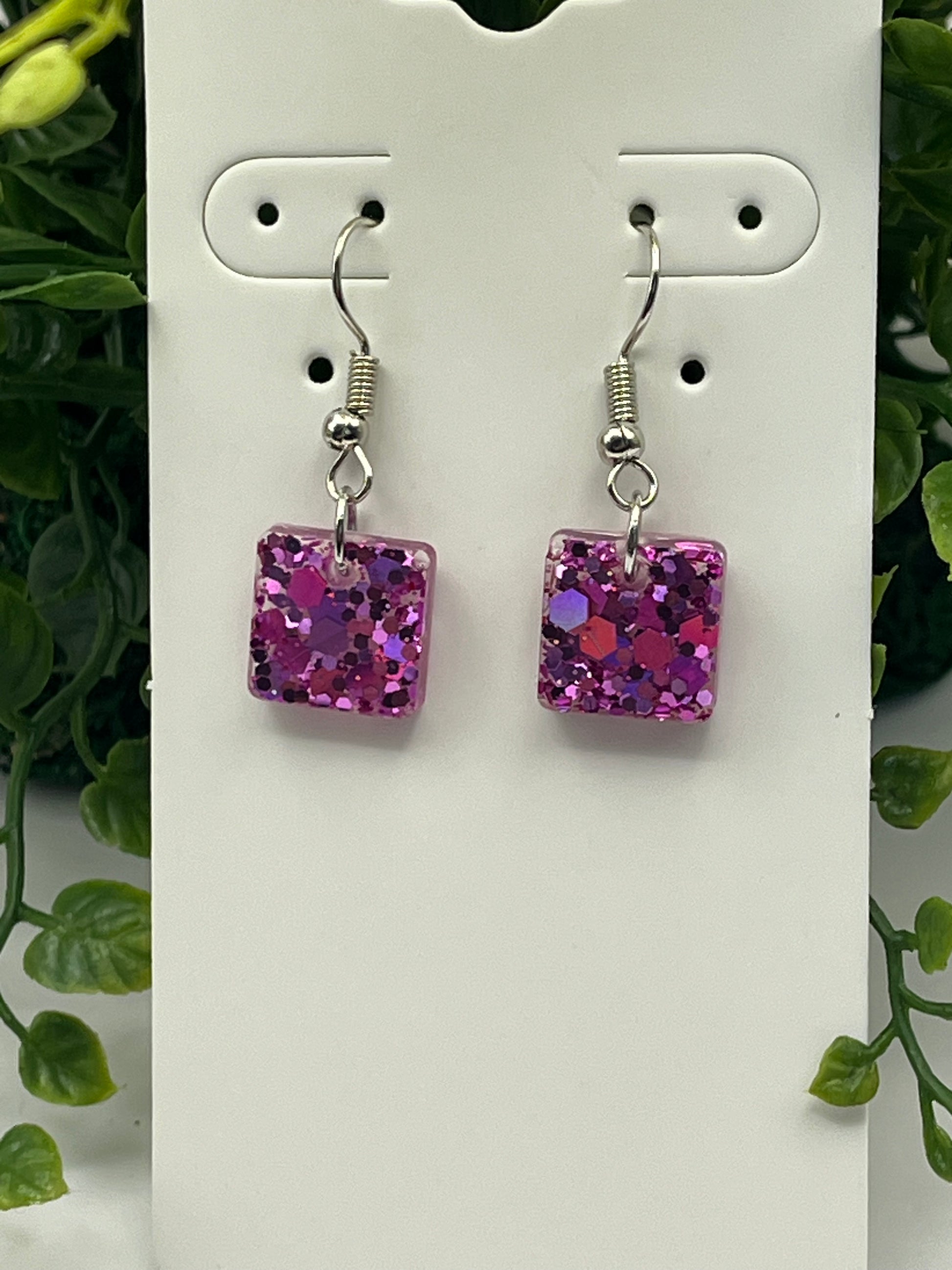 These beautiful holographic pink earrings will add so much sparkle to any outfit. Made with resin, glitter, and hypoallergenic stainless-steel hooks. Dimensions: Length 0.5", Width 0.5", and Total Drop Length with Hook 1.25". Spoil yourself with a pair of earrings that you will love.